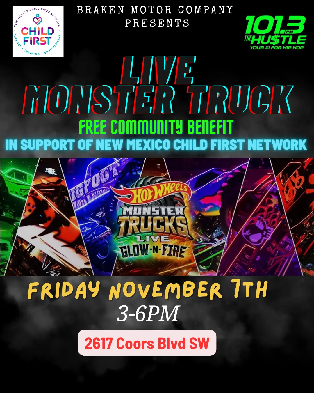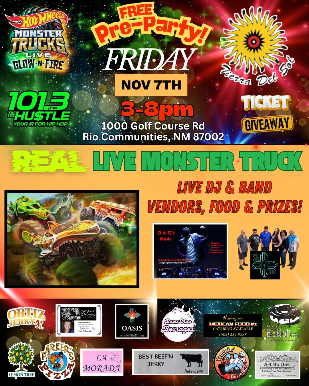 Live Music, FOOD, prizes, Hot Wheels Monster Trucks ticket Giveaways over 200 tickets to be given!!